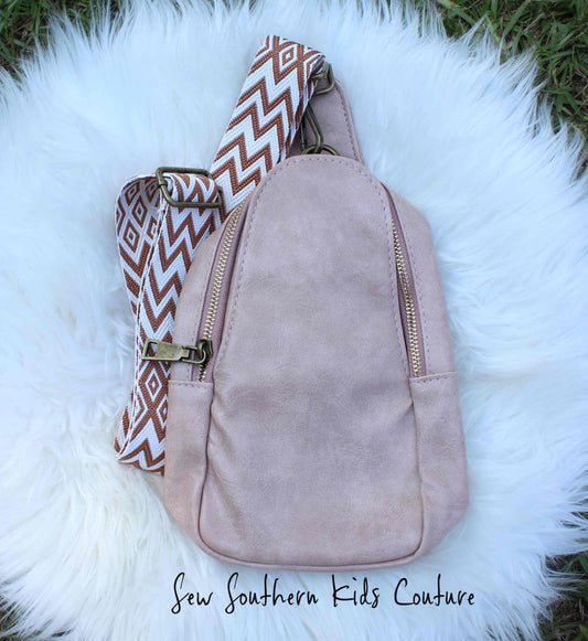 Light Brown/Beige Soft Vegan Leather Crossbody Bag