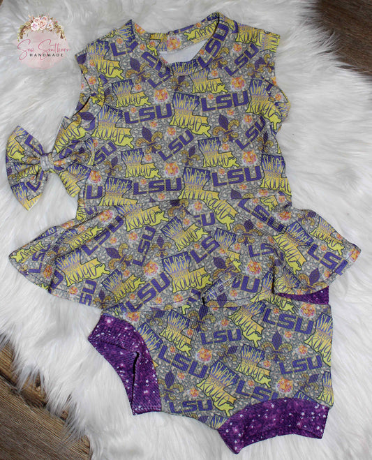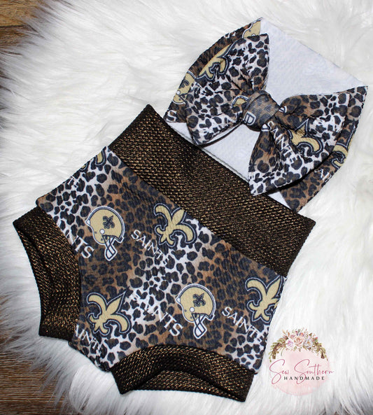 Faux Sparkle Cow Spots Highwaisted Bummies and Bow Set