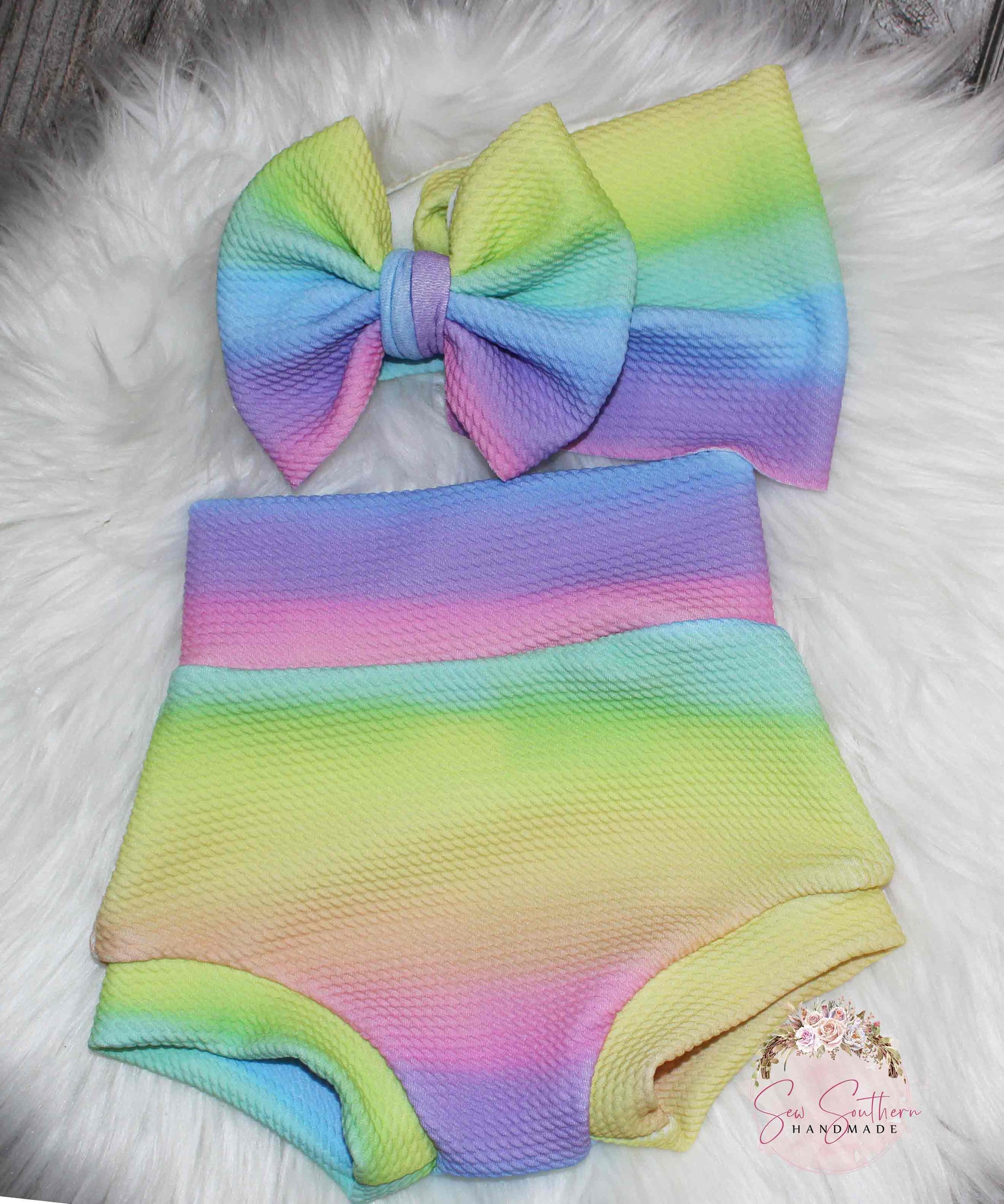 Rainbow Ombre Baby Bummies, Rainbow Headwrap Bow