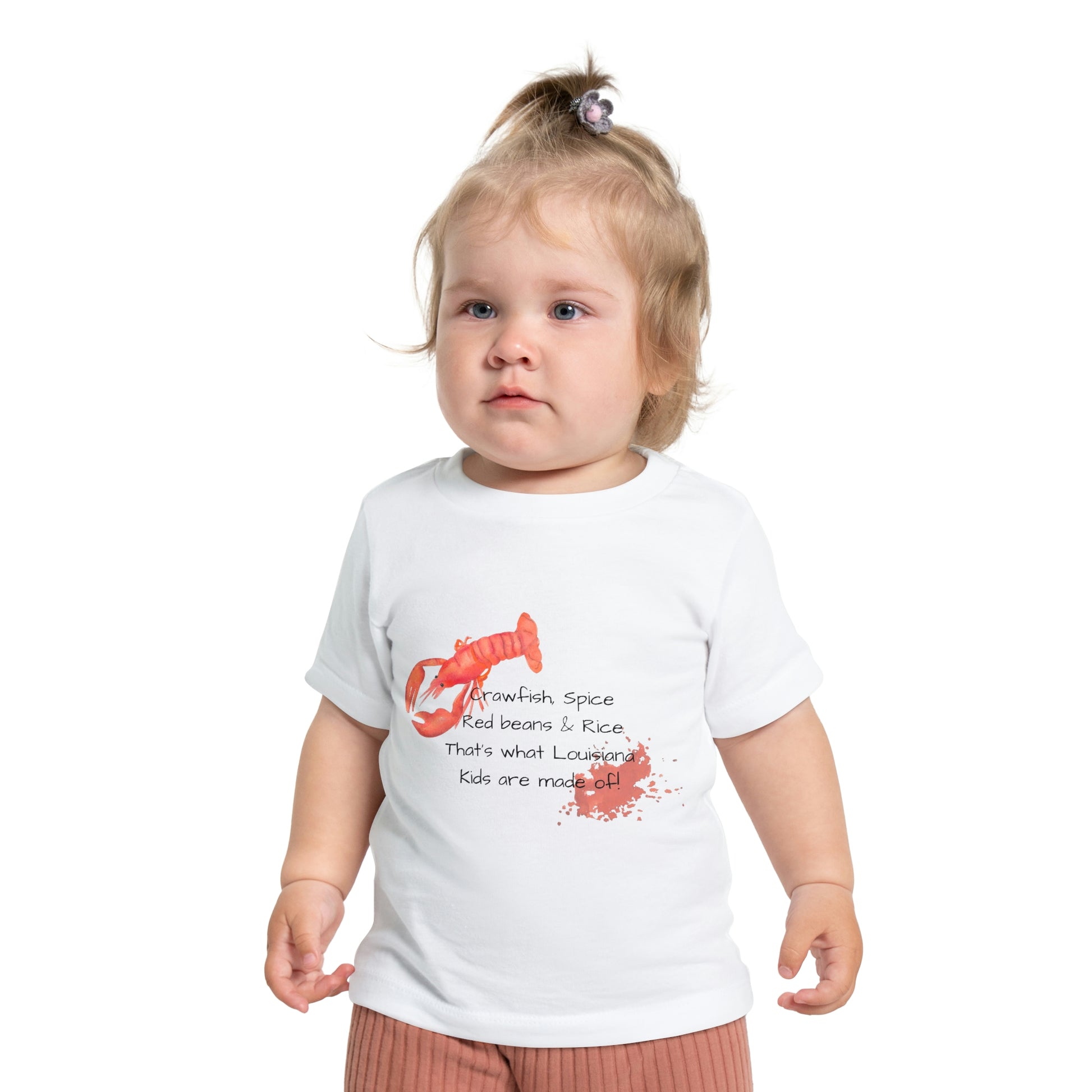 "Crawfish Spice, Red Beans & Rice, That's What Louisiana Kids are Made Of", For children—it's super-soft and comfortable. For parental figures—it's shrink-resistant and durable. All of that is made possible with the pre-shrunk, 100% airlume combed and ringspun cotton (Athletic Heather: 90/10 airlume combed and ringspun cotton-polyester blend; Additional Heather colors: 52/48 airlume combed and ringspun cotton-polyester blend).