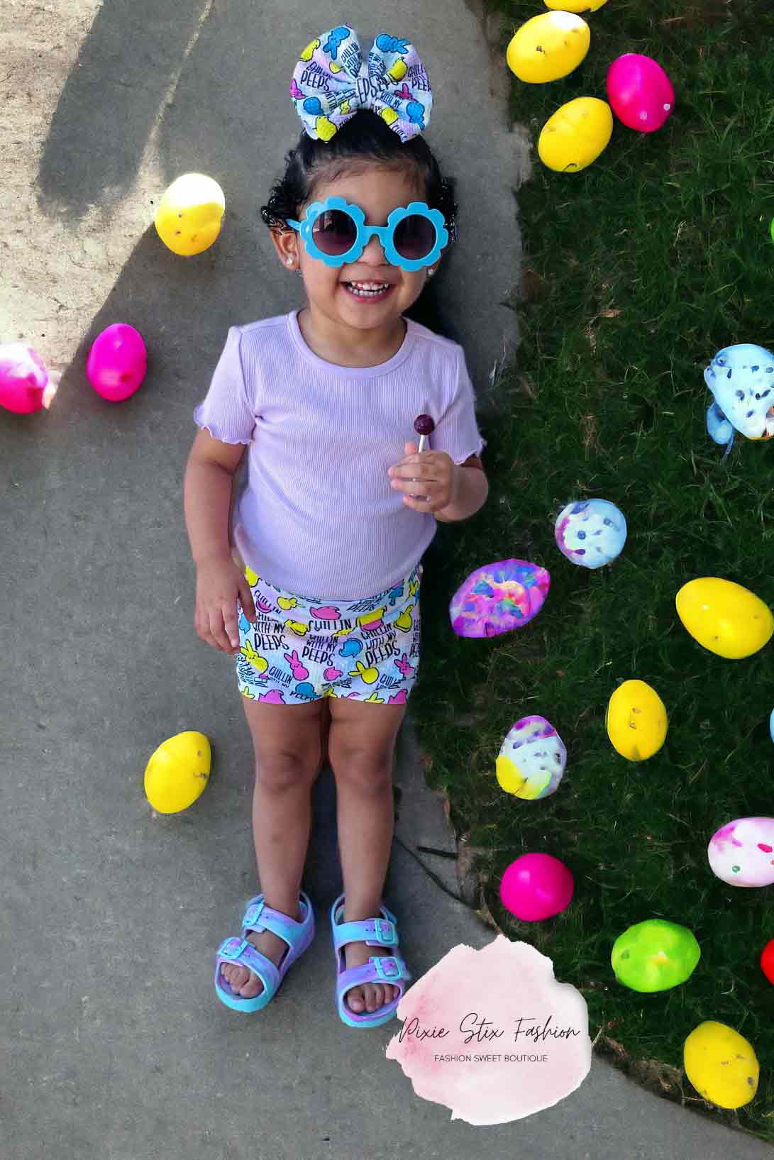 So adorable! "Easter Bunny Butt Bummies", with fluffy faux fur bunny tail. We love the way the colors POP and make these little bummies stand out, and the Peep pattern is SO cute! Awesome for the upcoming Easter season! Parties, get togethers, photos, OH MY!