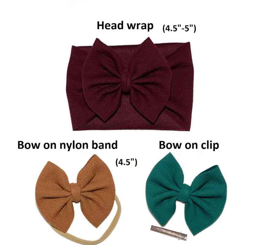 Pants have a yoga style waist band and adorable bells. Comes with optional 4" bow on nylon, clip or headwrap which completes the outfit.