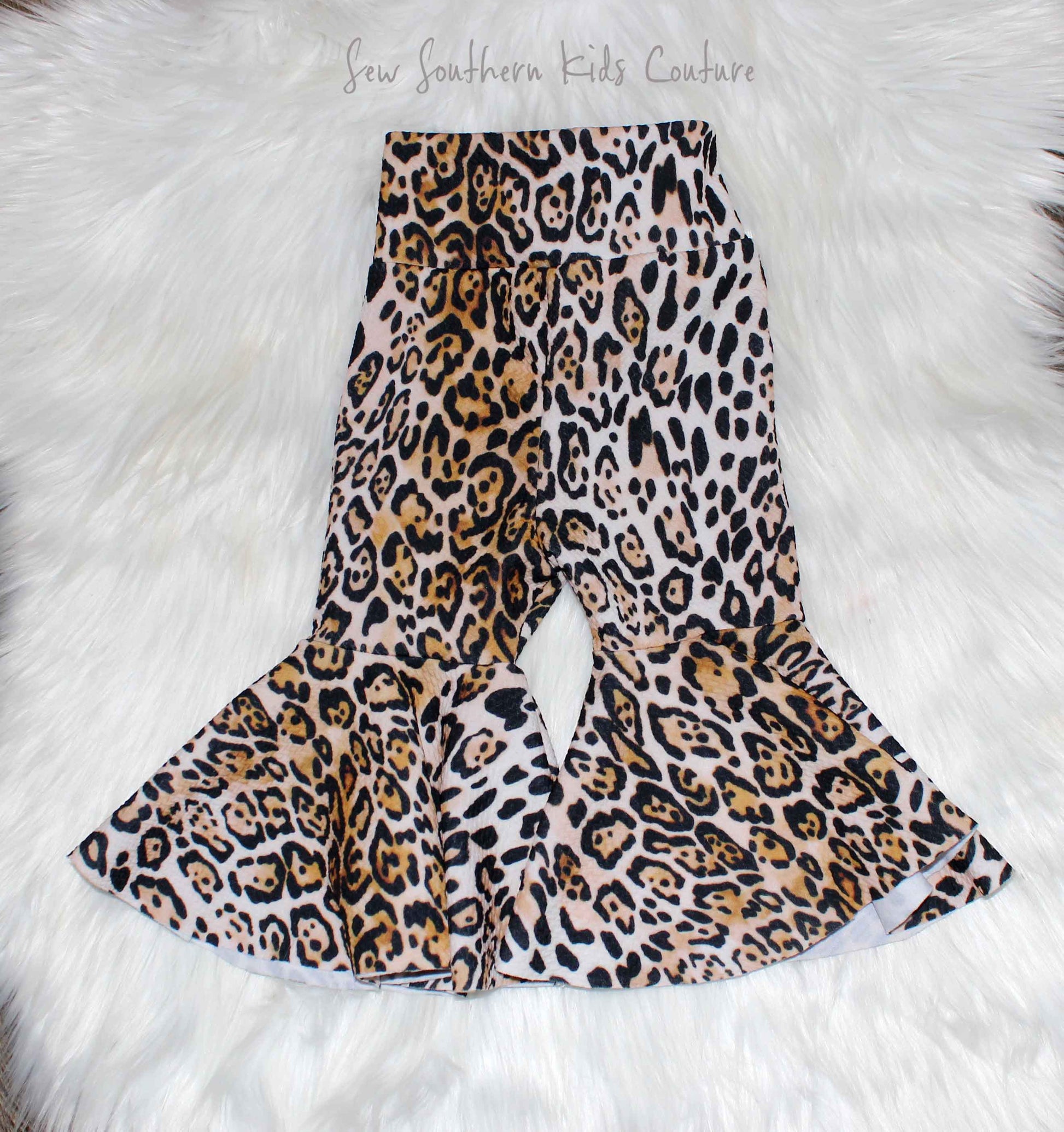 Bell bottoms baby! Adorably soft and comfy pants for your little one. These Leopard inspired bells are just the cutest ever! They are handmade and sewn from a soft knit blend fabric, so it has a generous stretch to make them so comfortable to wear. These look trendy paired with a cute tee shirt or can be dressed up with a crop top or blouse. *Please note these types of pants are intended to touch the ground unless worn with heels.