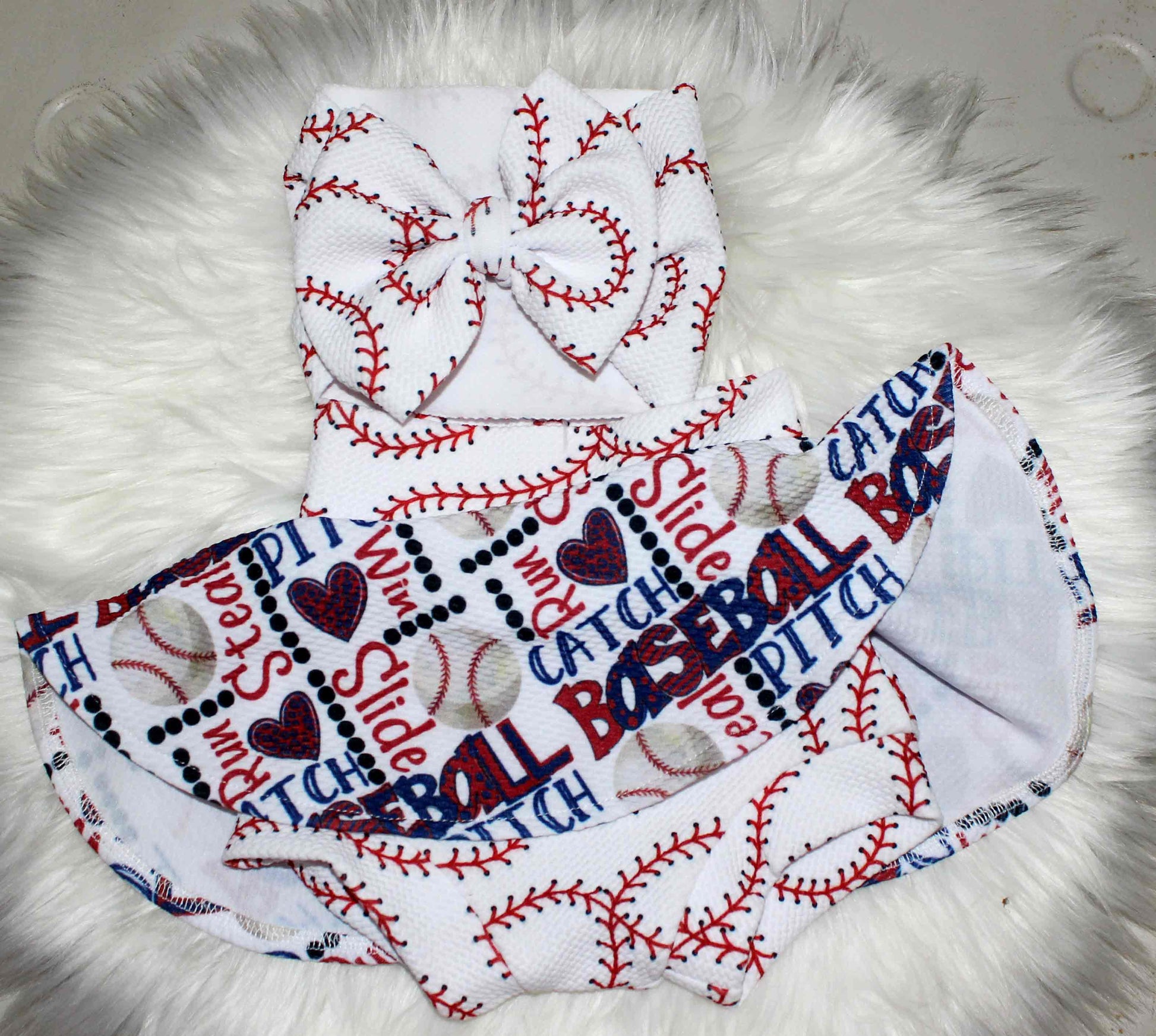 This adorable baseball skirted bummie and bow set will have your little one ready to cheer at every game! Live – Love – Pitch