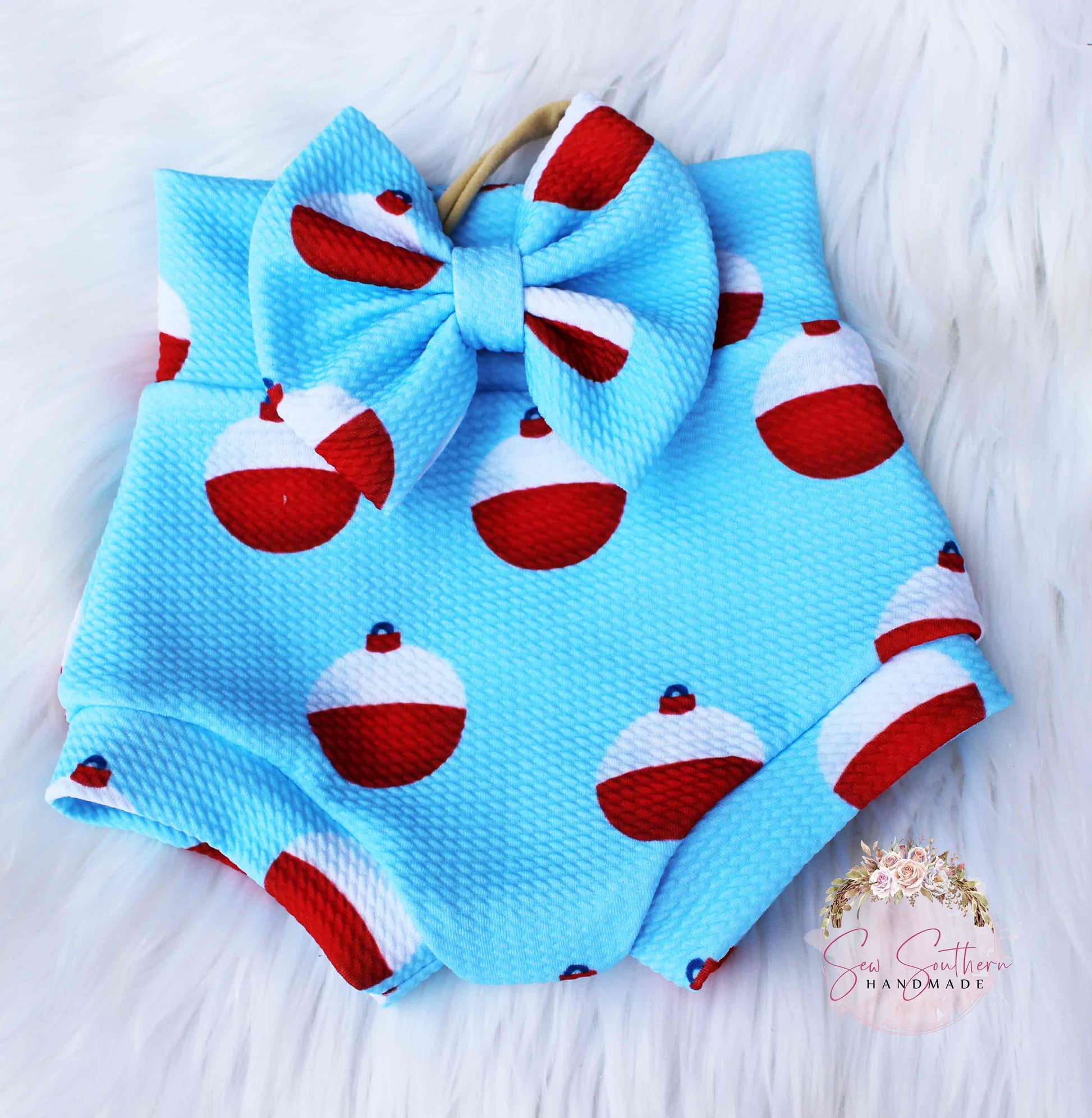 This listing is for our adorable "Gone Fishing" bobber bummie shorts and matching bow set. (You can order both pieces or just ones you want).