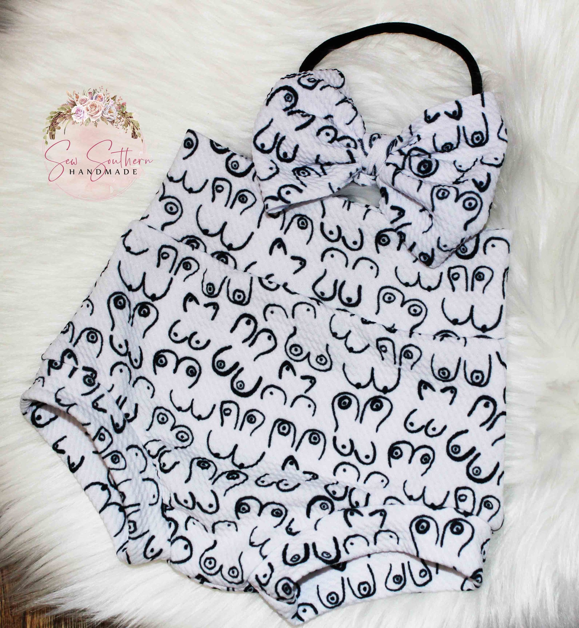 Full set includes Bodysuit, Bummies, Headwrap or Bow on Nylon band. You may purchase only the pieces you want. Make selection at checkout.