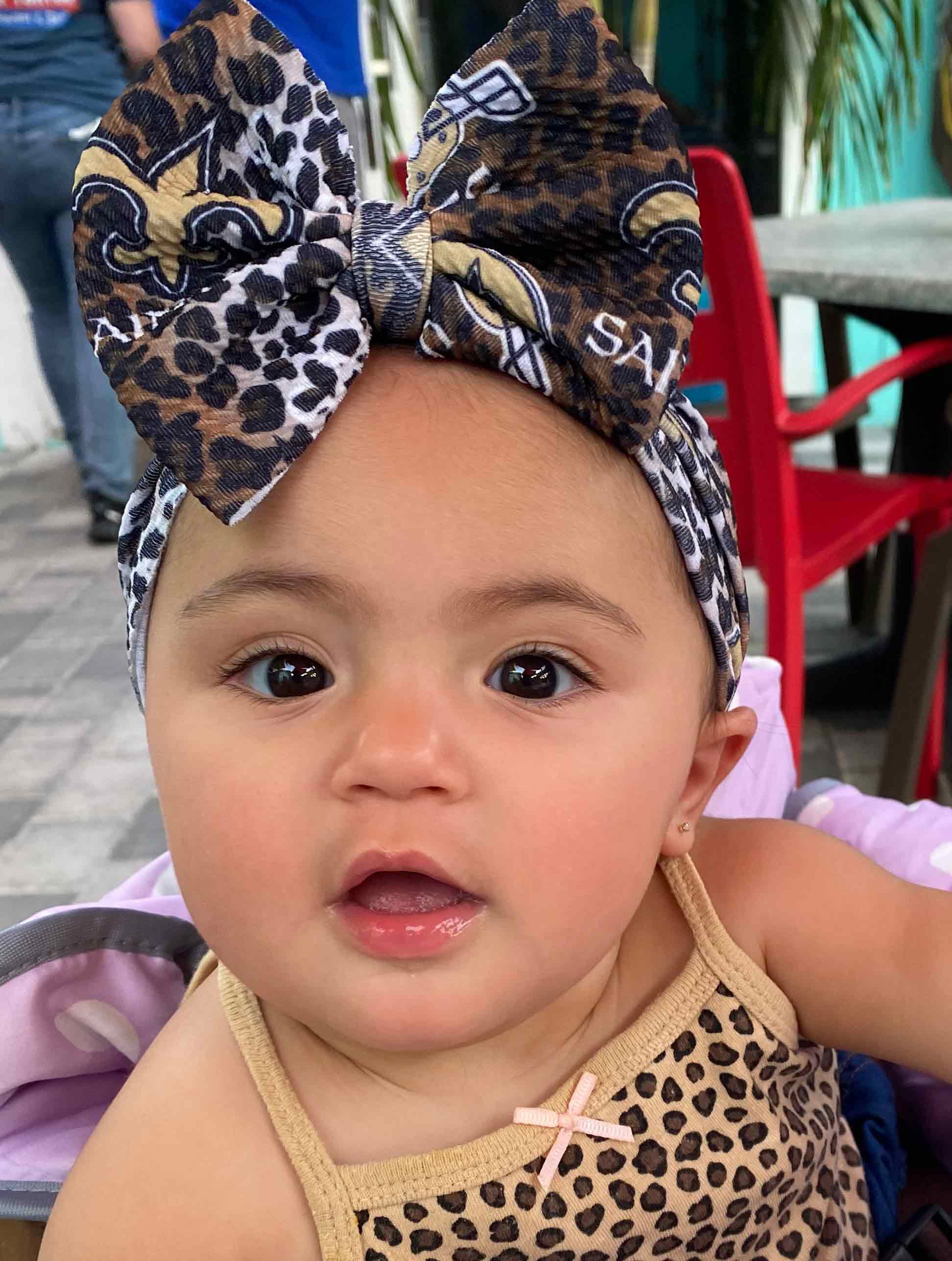 Comes with optional matching 4" bow on nylon headband or 5" Bow Headwrap! (Bow headwrap is pictured).