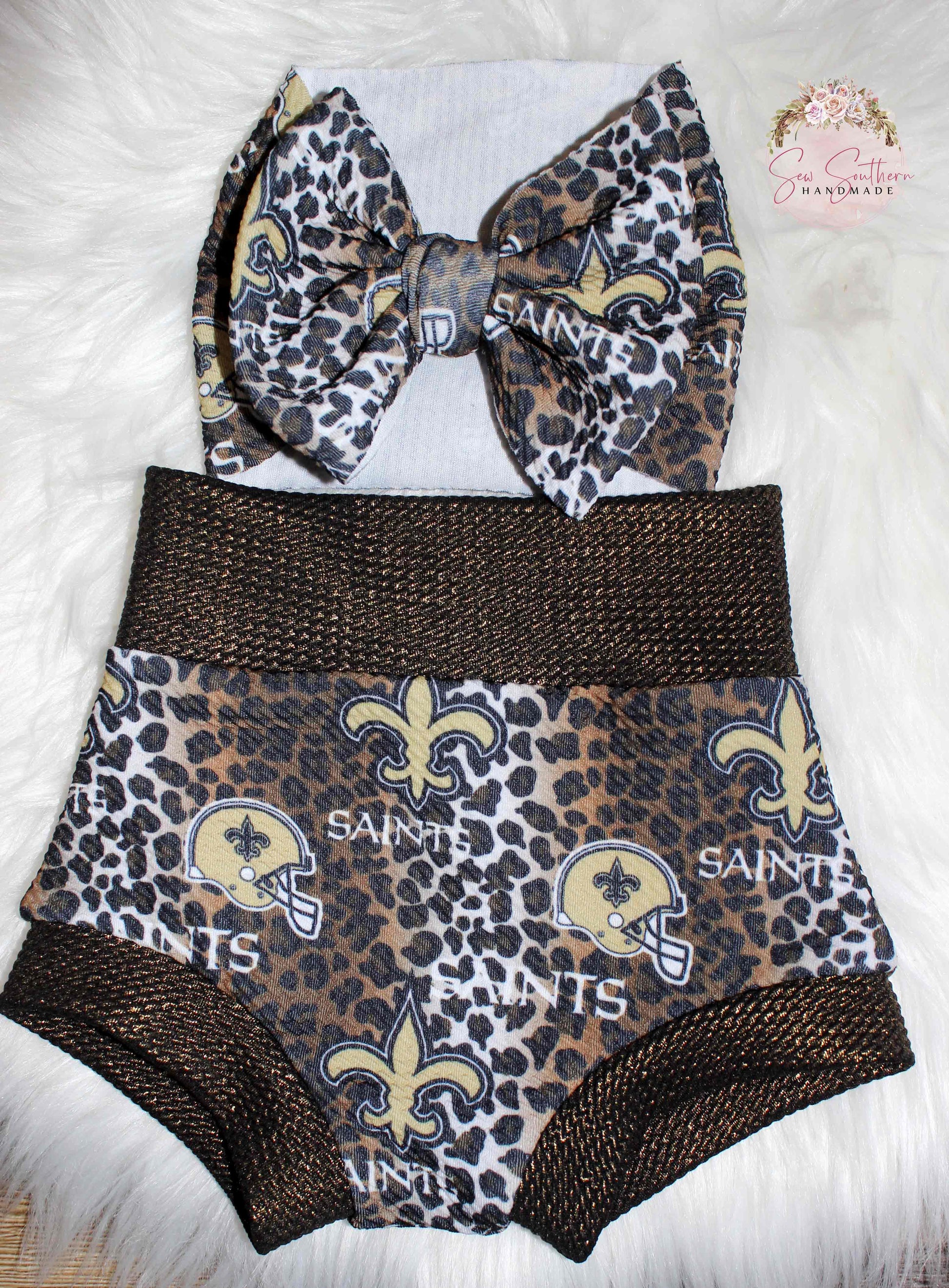 These adorable "New Orlans Saints", Bummies and Bow Set is seriously SO CUTE! They would make the PERFECT gift for every Saint's Fan, Team photo shoots, or for everyday wear.
