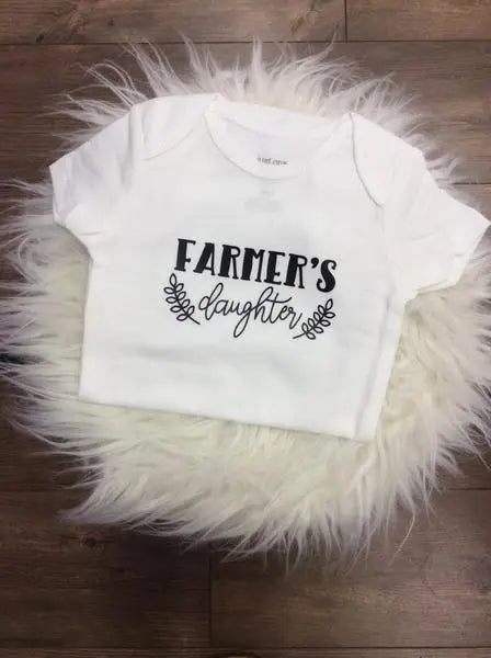 We think you are going to fall in love with our cute, trendy, and unique designs. This "Farmer's Daughter" onesie is perfect for your tiniest, little farm girl! We use only the highest quality bodysuits to give your little loves the perfect outfit for their most cherished moments!