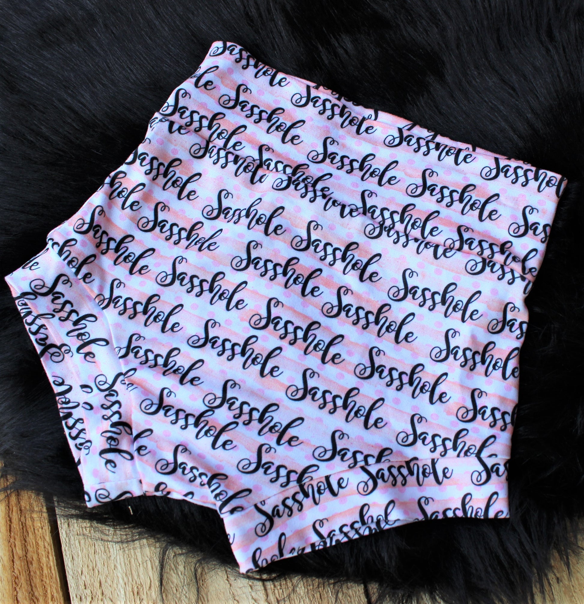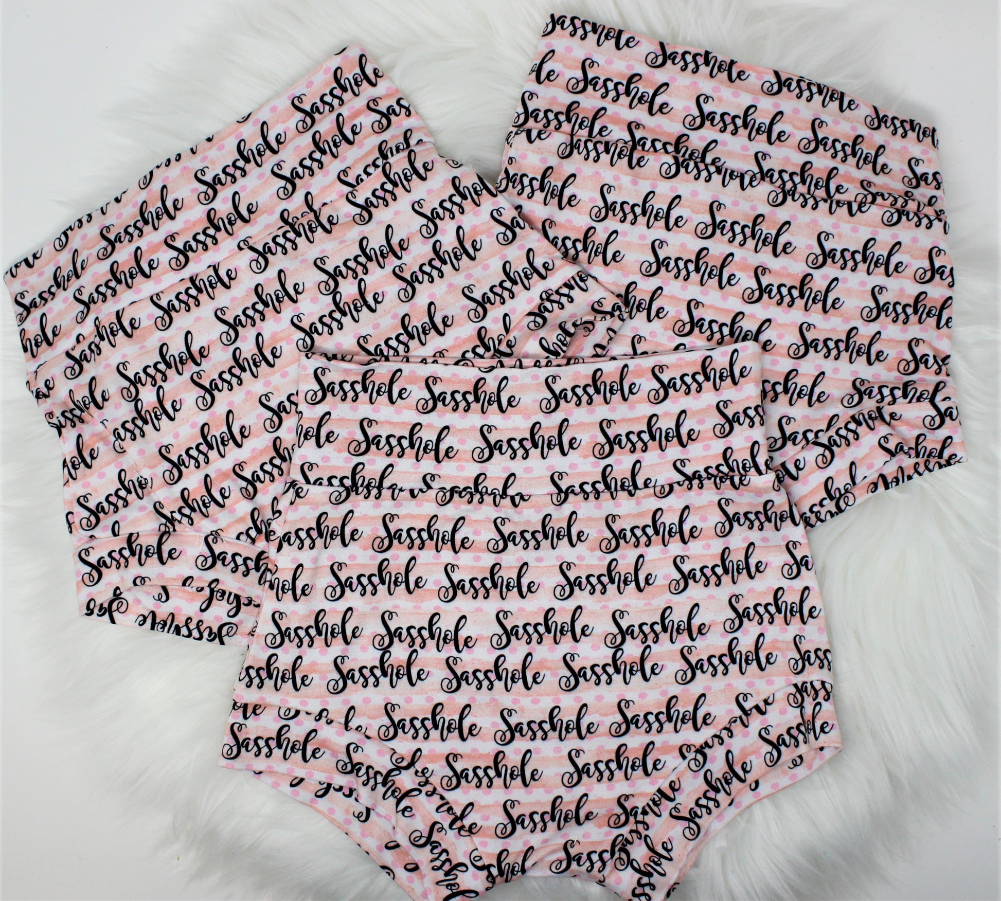 Adorable soft knit blend Pink and Black "Sasshole" Bummies are handmade in the USA and made to fit comfortably with a lightweight stretchy fit.