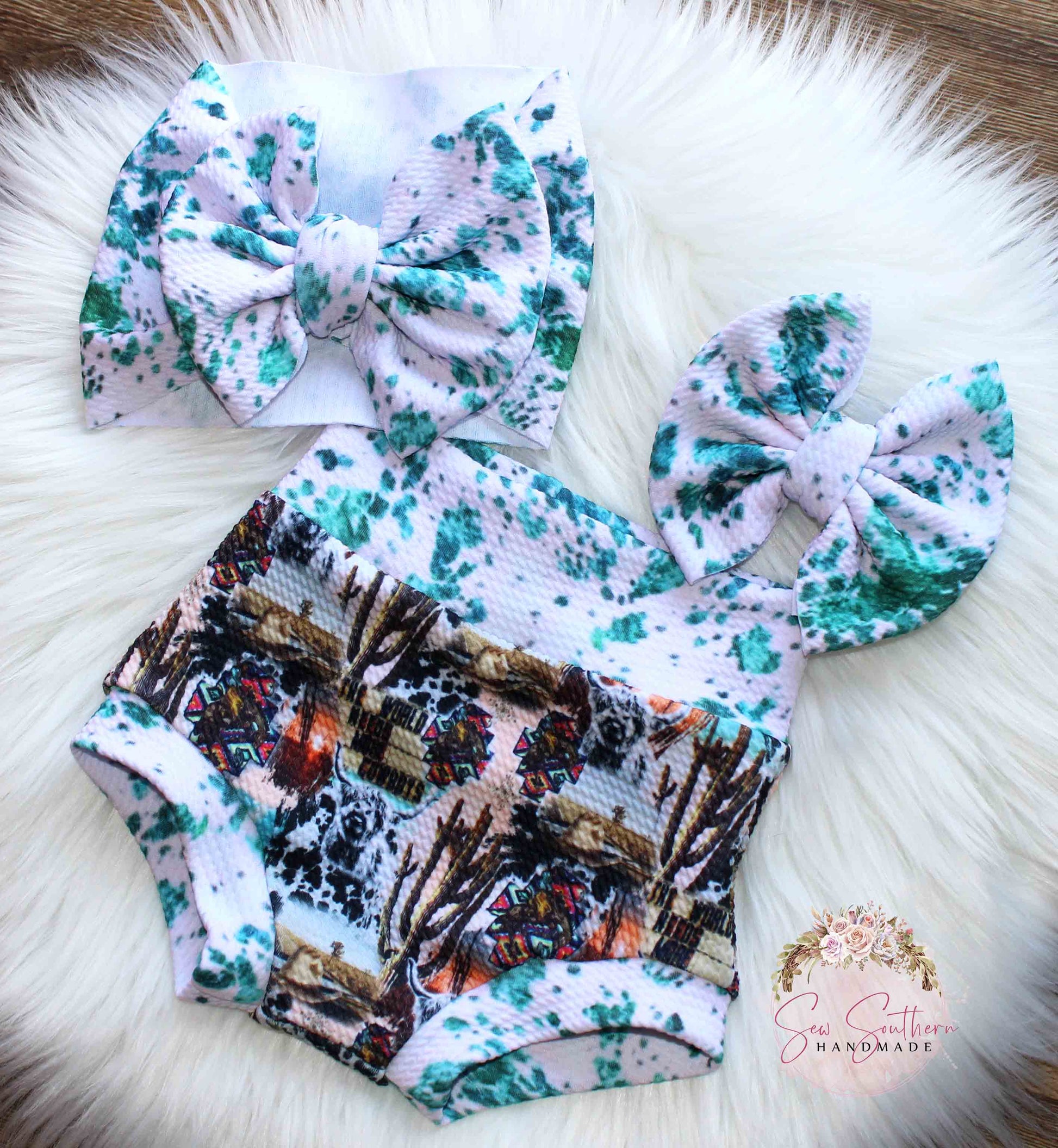 "The World Needs More Cowboys" bummies are so cute and comfortable for your little country cowgirl! The bummies are soft and comfy for your little cowgirl and will surely be a hit wherever you go! May be purchased individually or with coordinating bow on nylon or headwrap. Make your choice from the drop-down menu at checkout.
